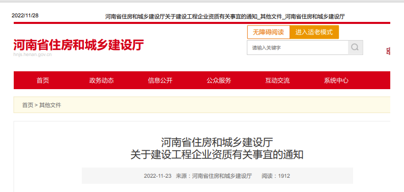 河南省住房和城鄉(xiāng)建設廳 關于建設工程企業(yè)資質有關事宜的通知